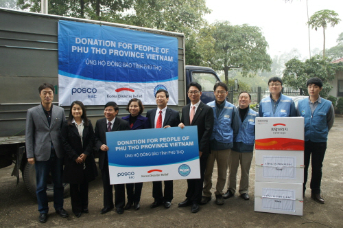 포스코건설은 지난 16일 베트남 하노이 인근에 위치한 푸토(Phu Tho)성(省)을 방문해 안전화와 체육복 등 구호물품 5600여점을 전달했다. 이 곳은 포스코건설 노이바이-라오까이 고속도로 현장이 위치한 곳이다.