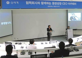 지난해 10월 경기도 용인 신세계인재개발원에서 신세계백화점 대표가 협력회사 대표 30명을 초청해 경영역량 강화 등에 대해 강의하고 있다.