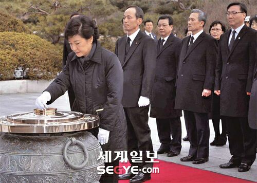 국립현충원 참배 입력 : 2013-02-26 10:20:45 수정 : 2013-02-26 10:20:45 구글 네이버 유튜브 박근혜 대통령이 취임식날인 25일 첫 공식일정으로 서울 동작구 국립현충원을 찾아 분향하며 참배하고 있다. 사진공동취재단 Copyright ⓒ 세계일보. 무단 전재 및 재배포 금지 세계일보
