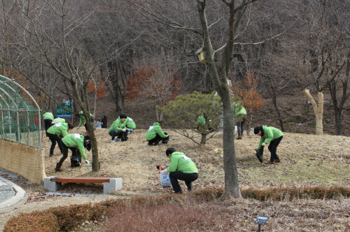 | '아산 2차 배방 푸르지오' 임직원들의 "아산시민과 함께 하는 환경사랑 캠페인" 진행 모습. 대우건설 제공 |