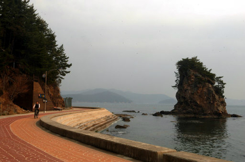 | 통영 미륵도의 남쪽 해안을 지나는 삼칭이 자전거길. |
