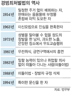 최초의 경범죄처벌법에는 현재의 노숙인과 같은 ‘일정한 주거 없이 배회하는 자’가 포함됐다.