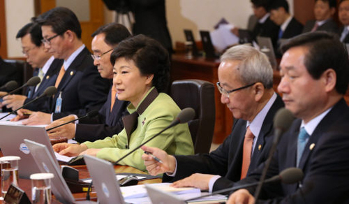 | 박근혜 대통령이 9일 청와대에서 열린 국무회의에서 북한의 개성공단 잠정 중단 사태에 대해 “매우 실망스럽다”고 우려를 밝히고 있다. 남제현 기자 |