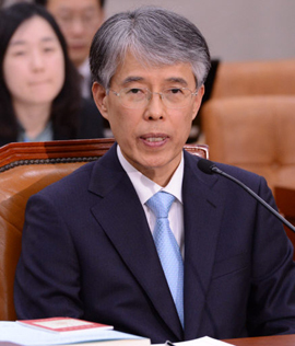| 조용호 헌법재판소 재판관 후보자기 11일 국회 법사위의 인사청문회에서 의원 질의에 답변하고 있다. 허정호 기자 |
