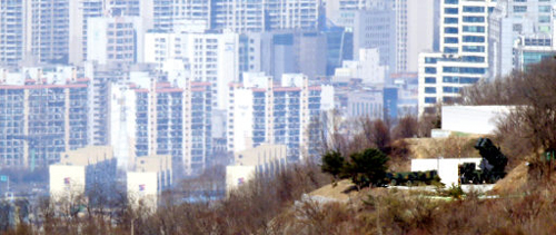 | 서울 도심의 패트리엇 북한의 미사일 도발이 예상된 가운데 11일 서울의 모처에 패트리엇(PAC-2) 요격 미사일이 북쪽 상공을 향해 배치돼 있다. 연합뉴스 |