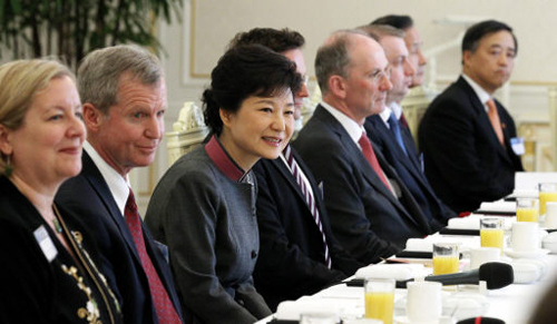 박 대통령은 이날 청와대에서 주요국 주한 상공회의소, 외국투자기업 관계자와의 오찬에서도 정부의 안정적인 위기 관리 능력을 강조하면서 “안심하고 투자하고 기업활동을 할 수 있는 안정적 환경을 만들어갈 것”이라고 말했다.