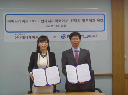 유무선 네트워크 전문 기업 애니게이트(대표 정남희)는 정보시스템 운영 및 유지보수 전문 기업인 현대디지텍코어(대표 현병주)와 지난 19일, 유무선 공유기 공급 및 고객지원 서비스에 대한 전략적 업무제휴(MOU)를 체결했다고 밝혔다.