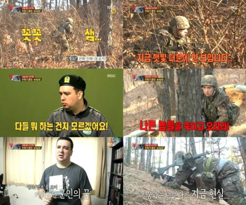 이날 방송에서 샘 해밍턴은 훈련이지만 실전 같은 만만하지 않은 상황에 당황하는 모습을 보였다. 이런 그의 모습으로 영화 같은 군인들의 용맹함에 뒤따르는 뼈를 깎는 훈련의 소중함을 간접적으로 드러냈다.