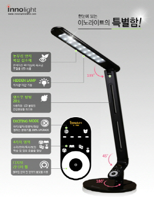 책상 스탠드 시장에서도 친환경 LED를 사용한 다양한 스탠드가 출시되고 있다. 이 중 뛰어난 기술력과 디자인으로 관심을 받고 있는 LED스탠드 전문업체 ㈜아이필유(www.innolightstand.com) 가4가지 EX 모드 기능이 추가된 LED 공부스탠드이노라이트 IL-720E 모델을 출시하여 호평을 받고 있다.