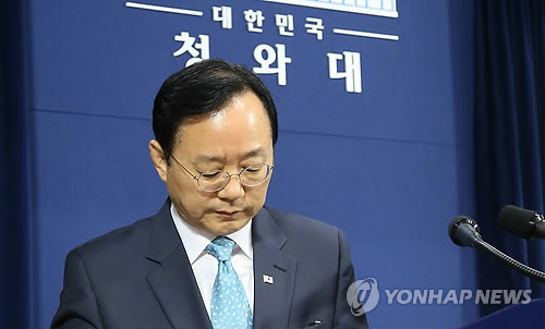 허 실장은 12일 청와대 춘추관에서 한 기자회견에서 "이 수석은 귀국 당일 저에게 소속 직원의 불미한 일로 모든 책임을 지고 사의를 표명한 바 있다"며 "이 문제에 있어 저를 포함해 그 누구도 책임질 일 있다면 결코 피하지 않을 것"이라고 말했다.