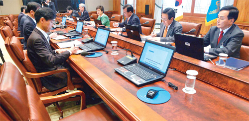| 홍보수석은 빈 자리 박근혜 대통령이 13일 오전 청와대에서 주재한 수석비서관회의에 윤창중 전 대변인의 성추행 의혹 사건으로 사의를 표명한 이남기 홍보수석의 자리가 비어 있다. 청와대사진기자단 |
