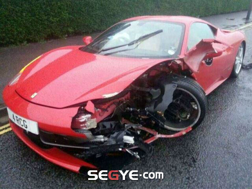 24일 사고가 발생한 페라리는 기본가격 3억7000만원에 옵션을 포함할 경우 4억원이 넘어가는 ‘458 이탈리아’ 모델이다. 영국 포트머스에서 일어난 이 사고로 붉은 색의 페라리는 폐차할 상황에 이르렀다. 세차장 직원은 세차를 마치고 차를 옮기는 과정에서 미끄러운 젖은 노면에서 운전 부주의로 사고를 냈다.