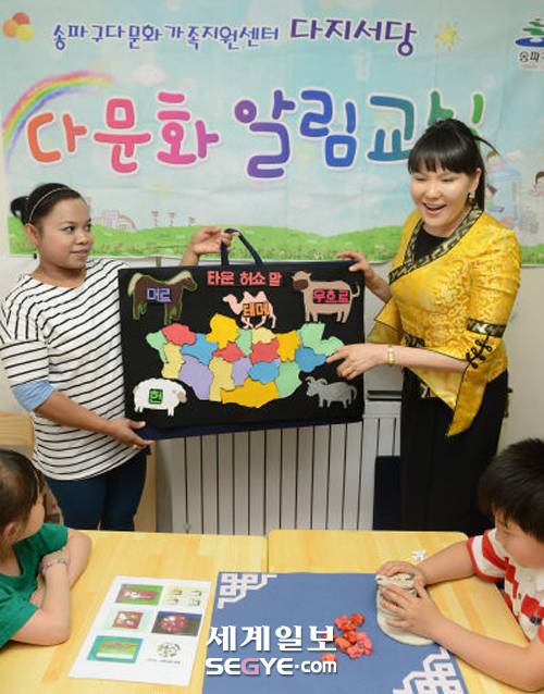 그는 결혼해 서울에 정착한 지 3년 만인 지난해부터 다문화교사로 활동하고 있다. 이 센터의 다문화교사 11명이 일선 학교에서 강의하면 일반 학생과 초·중등 교사도 다문화 인식을 달리하는 경우가 많다. 포털 사이트에서 검색하면 몽골이나 다문화가정에 대해 안 좋은 이야기가 많은데, 강의를 듣고 생각을 달리했다는 댓글을 다는 초등학생도 있다고 한다.