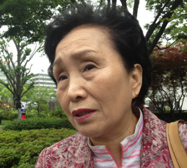 | 라오스에서 강제 추방된 ‘꽃제비’들의 가이드 역할을 했던 주모 목사의 어머니인 김연순씨가 29일 외교부 청사 앞에서 본지와 인터뷰를 하고 있다. 김씨는 “대사관과 영사들이 아들 부부와 꽃제비들에게 한번도 접견이나 연락도 해주지 않아 강제추방됐다”고 폭로했다. 김동진 기자 |