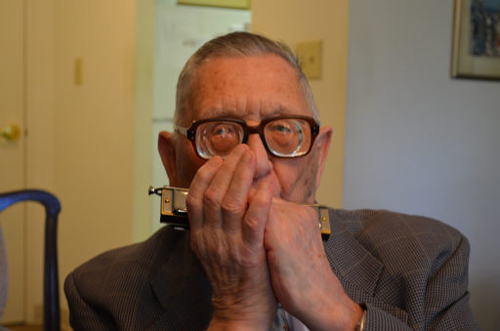 | 에드워드 로니 장군이 26일(현지시간) 워싱턴 서북쪽 외곽의 ‘놀우드’ 군은퇴자커뮤니티에서 가진 세계일보와 단독 인터뷰 도중 하모니카로 아리랑을 연주하고 있다. 로니 장군은 더글러스 맥아더 미 극동군사령관 참모진 중 유일한 생존 인물이다. 워싱턴=박희준 특파원 |