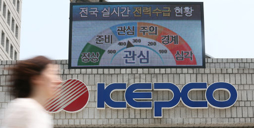 | 5일 서울 강남구 삼성동 한국전력 정문 앞에 설치된 전광판에 전력 수급 현황이 ‘관심’으로 표시돼 있다. 연합뉴스 |
