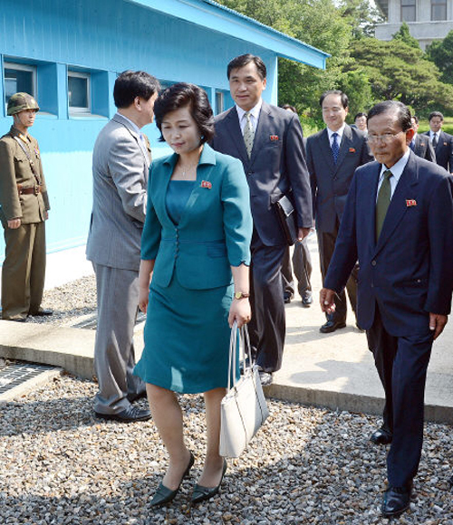 | 남북 장관급 회담 실무접촉이 이뤄진 9일 판문점에서 북측 수석대표인 김성혜 조국평화통일위원회 서기국 부장(가운데)이 군사분계선을 넘어 우리측 평화의 집으로 향하고 있다. 통일부 제공 |