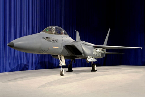| 보잉사가 공개한 F-15 사일런트 이글의 실제 크기 모형. 내부무장탑재실에 탑재된 공대공 미사일이 발사되기 위해 바깥으로 나와 있는 상태로 전시돼 있다. 보잉 제공 |