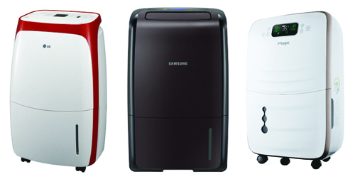 | (왼쪽부터) LG전자 제습기, 삼성전자 제습기, 동양매직 제습기 |