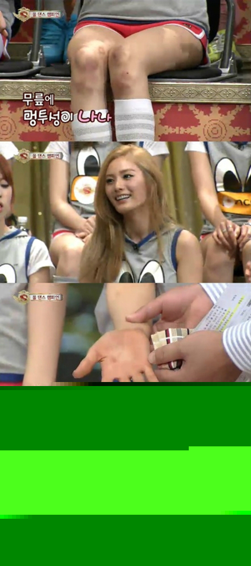 애프터스쿨은 최근 SBS ‘놀라운 대회 스타킹’에 출연해 전문 폴 아트 강사도 놀랄만한 실력을 보였다. 하지만 다리에 든 숱한 멍과 손과 팔의 상처로 그간의 노력을 증명했다.