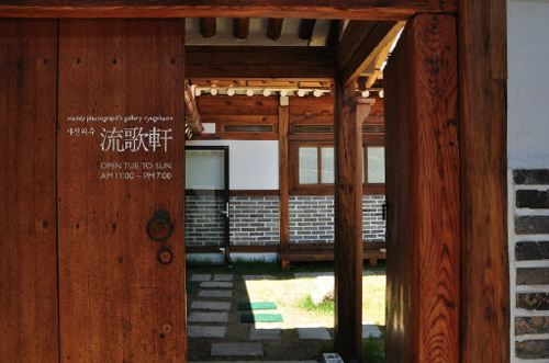 | 한옥 두 채가 나란히 기와지붕을 맞댄 형태로 이뤄져 있는 ‘류가헌’에서는 사진을 비롯한 다양한 예술작품이 전시 중이다. |