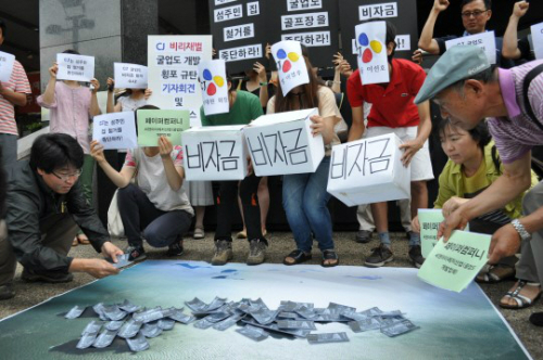 연대는 “CJ그룹의 총체적인 비리가 드러나고 이 회장이 소환되기에 이르렀다”며 “각종 비자금을 조성해 탈세, 주가조작을 벌이는 재벌그룹의 추악한 면모가 여실히 드러났다”고 비판했다.
