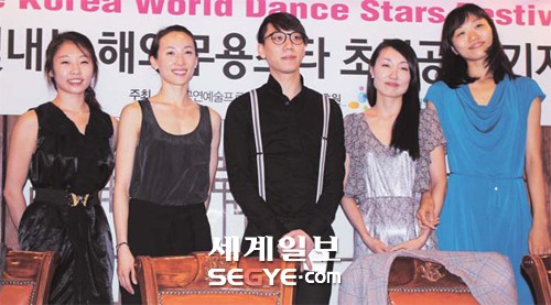 | 10, 11일 열리는 ‘2013 한국을 빛내는 해외 무용스타 초청공연’ 출연진이 한데 모였다. 왼쪽부터 박예지, 김지원, 윤전일, 황환희, 김유진. |