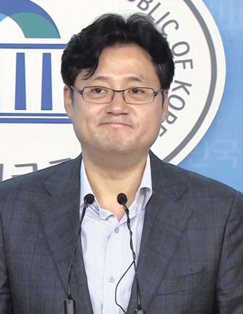 | “물러납니다”민주당 홍익표 원내대변인이 12일 오후 국회 정론관에서 기자회견을 열어 박근혜 대통령을 ‘귀태의 후손’으로 비하해 파문을 일으킨 데 대해 사과하고 대변인직 사퇴의사를 밝히고 있다. 연합뉴스 |