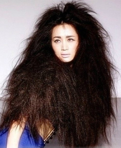 화보 속 김혜수는 다소 과하게 부풀린 헤어스타일을 하고 있다. 엄청난 양의 모발량 때문에 상반신이 다 가려질 정도다.