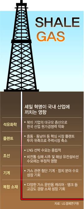 셰일혁명의 최대 수혜자는 미국 경제다. 반면 중동과 천연가스 강국 러시아엔 악재다. 우리나라에 미칠 영향은 호재와 악재가 뒤섞여 있다. 중동 시장의 위축은 일단 이 지역 공략에 주력한 국내 엔지니어링 기업에 안 좋은 소식이다. 설비 투자가 늘어날 미국은 한국 기업이 갖고 있는 장점이 충분히 발현하거나 수익을 얻기 어려운 시장이다. 석유화학 업종 역시 북미기업이 대규모 증산에 나서게 되면 국내 기업은 원가 경쟁력 악화로 고전할 수밖에 없다.