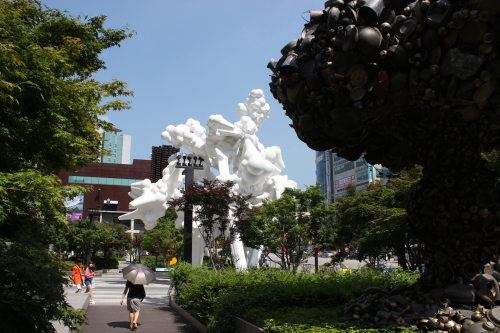 “처음 ‘머나먼 여정’을 들여 왔을 때 많은 사람들이 의아해했어요. 굉장히 비싼 작품으로 알고 있는데 누구나 오가며 만질 수 있는 버스터미널 앞에 그런 작품을 설치해 놨으니 일반인 생각으로는 그럴 법도 했지요. 하지만 누구 하나 작품을 훼손하지 않았고 휴대폰이 흔하지 않던 시절 아라리오의 무한한 가능성과 잠재력을 상징하도록 들여 온 이 작품 앞은 금세 만남의 장소가 됐습니다.”