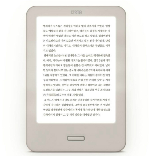 ‘크레마 샤인’은 지난해 9월 출시돼 2만대 이상의 판매량을 기록한 ‘크레마 터치’의 후속 제품이다. HD 해상도(1024×758)의 전자잉크 패널에 LED 프론트 라이트를 탑재해 독서 편의성을 극대화했다. 운영체제로는 전 세계 전자책 단말기 중 최초로 안드로이드 4.0 아이스크림 샌드위치(ICS)를 채택해 처리속도오 전력 효율을 높였다.