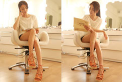 공개된 사진 속 박하선은 흰색 블라우스에 검정색 핫팬츠를 입고, 오렌지색 웨지힐을 신고 있다. 박하선은 무보정 사진임에도 우월한 각선미를 드러내 시선을 사로잡았다.