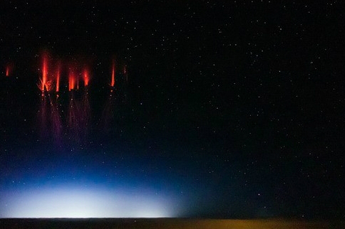 그는 번개가 치는 순간 구름 상층부에서 우주를 향해 뻗어가는 붉은 안개를 봤다고 전했다. 1/1000초 정도만 지속되기 때문에 육안으로 확인하기 어렵다.