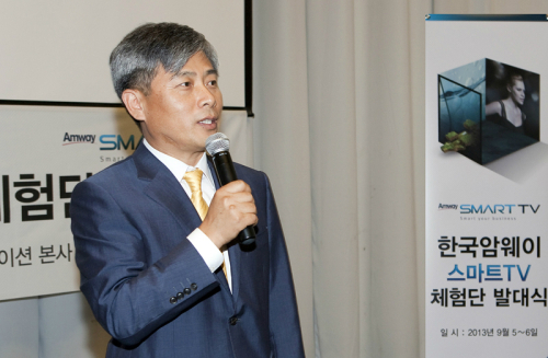 | 5일 다음 본사에서 진행된 ‘암웨이 스마트 TV 사전 체험단’ 발대식에서 한국암웨이 김장환 부사장이 환영사를 하고 있다 |