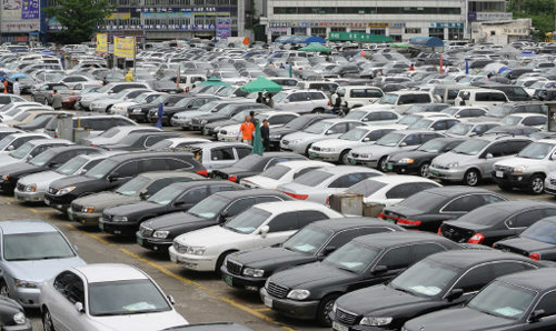 | 중고차 시장에서는 소비자가 차의 겉만 봐서는 결함을 알 수 없는 ‘숨겨진 정보’ 때문에 품질이 나쁜 중고차가 거래될 수 있다. 사진은 서울의 한 중고차 시장에 나온 승용차. 세계일보 자료사진 |