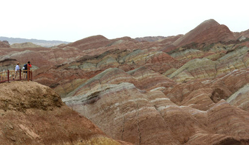 단샤(丹霞)지질공원의 ‘칠채산’은 장예 지역을 대표하는 관광명소로, 알록달록한 산들이 510㎞에 걸쳐 장관을 이루고 있다. 수억 년 전에 생성된 퇴적암과 오랜 세월 지각변동과 풍화작용으로 형성된 붉은 사암들이 단층화돼 특이한 형상을 하고 있다.