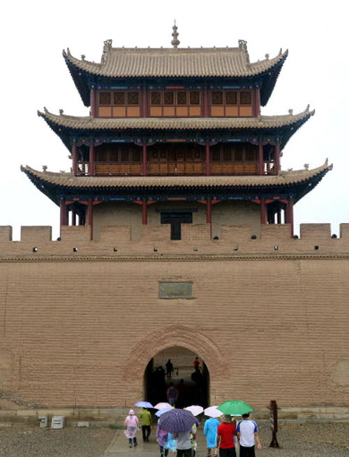 만리장성의 서쪽 끝이자 ‘천하제일웅관’으로 불리는 가욕관은 고대 실크로드의 교통요지이며 서역으로 나가는 관문이다. 간쑤성 하서주랑의 중간에 위치해 있다. 이곳은 고대 중국에서 중원을 지배하는 왕조가 서역의 이민족 침략을 막기 위해 반드시 지켜야 했던 전략적 요충지였다. 그런 이유에서 사막 한가운데 성벽을 쌓고 방어진을 구축했다. 현재 가욕관은 14세기 명대에 지은 것이다. 우뚝 솟아 있는 성채는 아름답고 장엄하다. 성루는 외성과 내성으로 분리되어 있다. 성채 안에 위치한 박물관에서는 만리장성 역사와 당시 생활상을 알 수 있는 유물을 전시하고 있다. 곳곳에 내부공사가 진행 중이지만 ‘천하웅관’이라고 새겨진 비석 및 흑산석각화상, 가욕관관성, 가욕관활상기지, 신성위진벽화 묘 등의 볼거리가 있다.