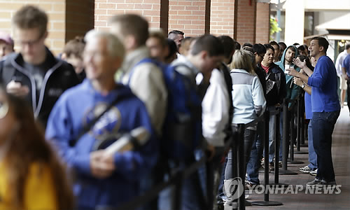 당시 애플 스토어 바깥에는 고객 200여명이 신제품 아이폰 5S와 5C를 사기 위해가게가 문을 열기 전부터 줄을 서서 기다리고 있었다.