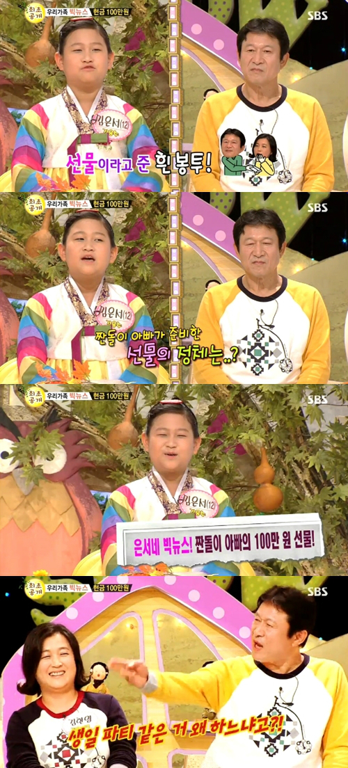 배우 김응수 딸 김은서 양은 21일 방송된 SBS '스타주니어쇼 붕어빵'에서 최근 가장 놀란 일로 아빠가 엄마 생일선물을 준 것을 꼽았다.