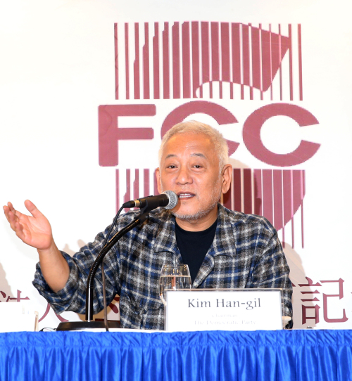 | 민주당 김한길 대표가 27일 프레스센터에서 열린 서울외신기자클럽 초청 간담회에서 기자들의 질문에 답하고 있다. 국회사진기자단 |