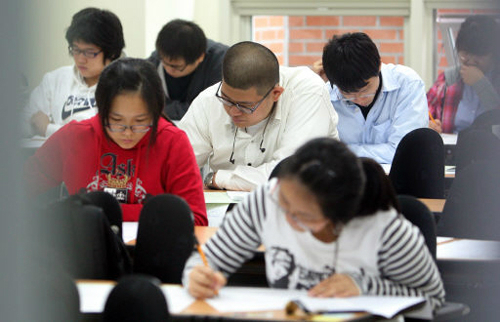 | 논술고사는 지원 대학의 최근 계열별 출제경향과 방식을 면밀히 따진 뒤 맞춤형 대비를 하는 게 중요하다. 사진은 과거 경희대의 수시 논술고사 응시생들이 시험에 열중하고 있는 모습. 세계일보 자료사진 |