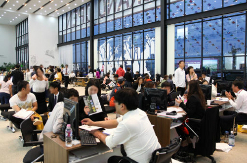 | 예비 청약자들이 29일 안성 롯데캐슬 모델하우스에서 분양상담을 받고 있다. |