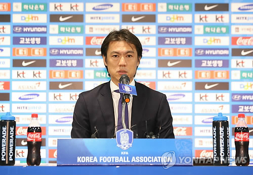 | 대표팀 명단 발표하는 홍명보 감독 홍명보 축구국가대표 감독이 30일 서울 종로구 신문로 축구회관에서 다음달에 실시되는 브라질과 말리전에 출전할 대표팀 친선경기 명단을 발표하고 있다. |