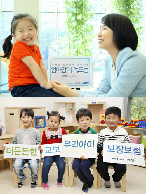 | 어린이 보험에 가입할 때는 태아보장 여부와 종합적인 보장, 만기 후 성인 전환, 부가혜택 등의 사항을 확인하고 가입해야 한다. 삼성화재의 ‘엄마 맘에 쏙 드는’(위쪽)은 부모의 부재시 아이가 안정적인 교육을 받을 수 있도록 대학 교육비를 지원해주고 교보생명의 ‘교보 우리 아이 보장보험’은 12세 이하 자녀의 독서가이드를 제공한다. 삼성화재, 교보생명 제공 |
