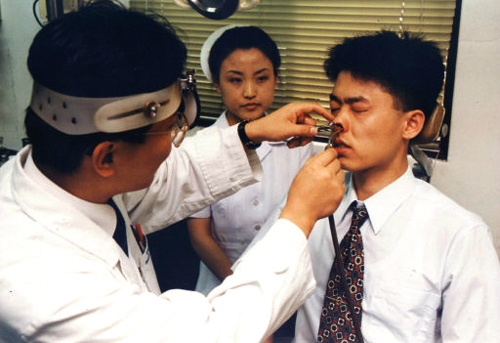 | 콧물, 재채기 등 비염 증상에 시달리던 환자가 이비인후과에서 진료받고 있다. 최근 2∼3주간 맑은 콧물과 재채기를 했다면 계절성 알레르기 비염을 의심하고 적절한 치료를 받아야 한다. 세계일보 자료사진 |
