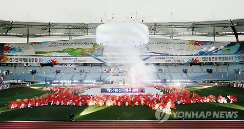 | 인천시 남구 문학경기장에서 개막식 예행연습이 진행되고 있다. |