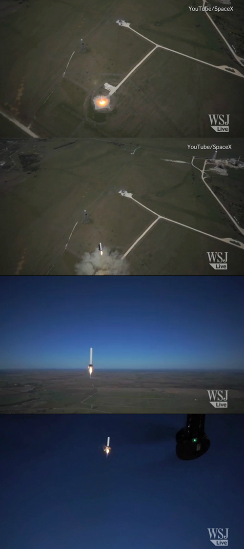 미국 월스트리트저널(WSJ) 등 외신은 ‘스페이스 X’로 명명된 메뚜기 로켓이 텍사스 주(州) 맥그레고르에서 744m 상공까지 떠올랐다가 제자리로 무사히 돌아왔다고 최근 보도했다.