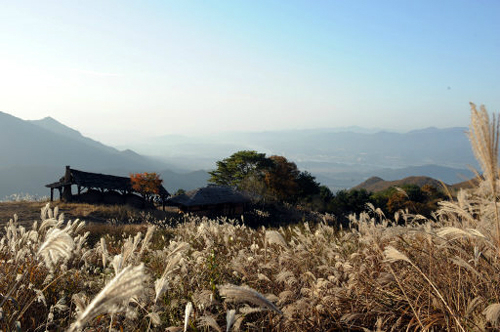 | 영화 ‘관상’의 촬영지였던 양평 유명산 설매재의 억새밭과 그 사이에 놓인 오두막집. 영화의 장면들을 기억해 가며 아침 햇살을 받아 은빛으로 빛나는 억새밭 사이를 걸으면 색다른 감흥에 젖게 된다. |