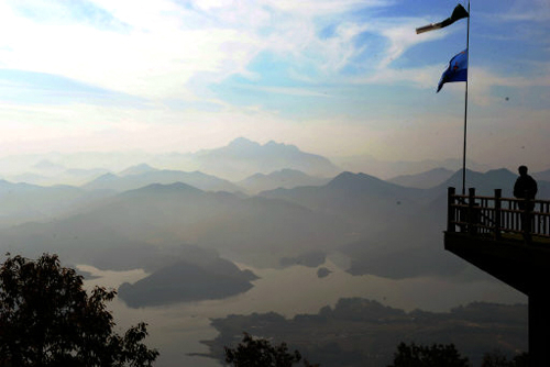 | 비봉산 정상 아래 펼쳐지는 그윽한 청풍호 풍경. |